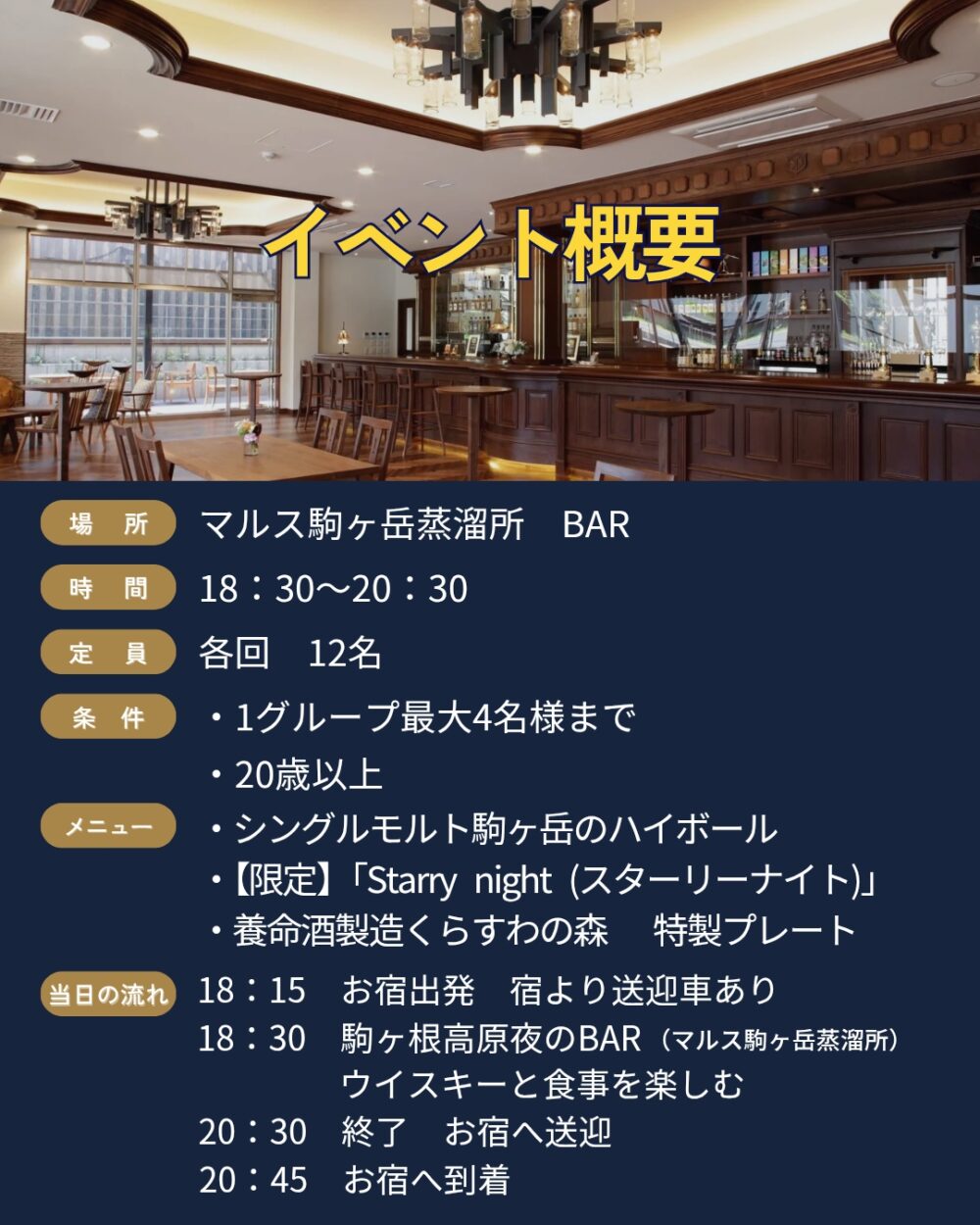 マルス駒ヶ岳蒸溜所にて「駒ヶ根高原 夜のBAR」を開催します!